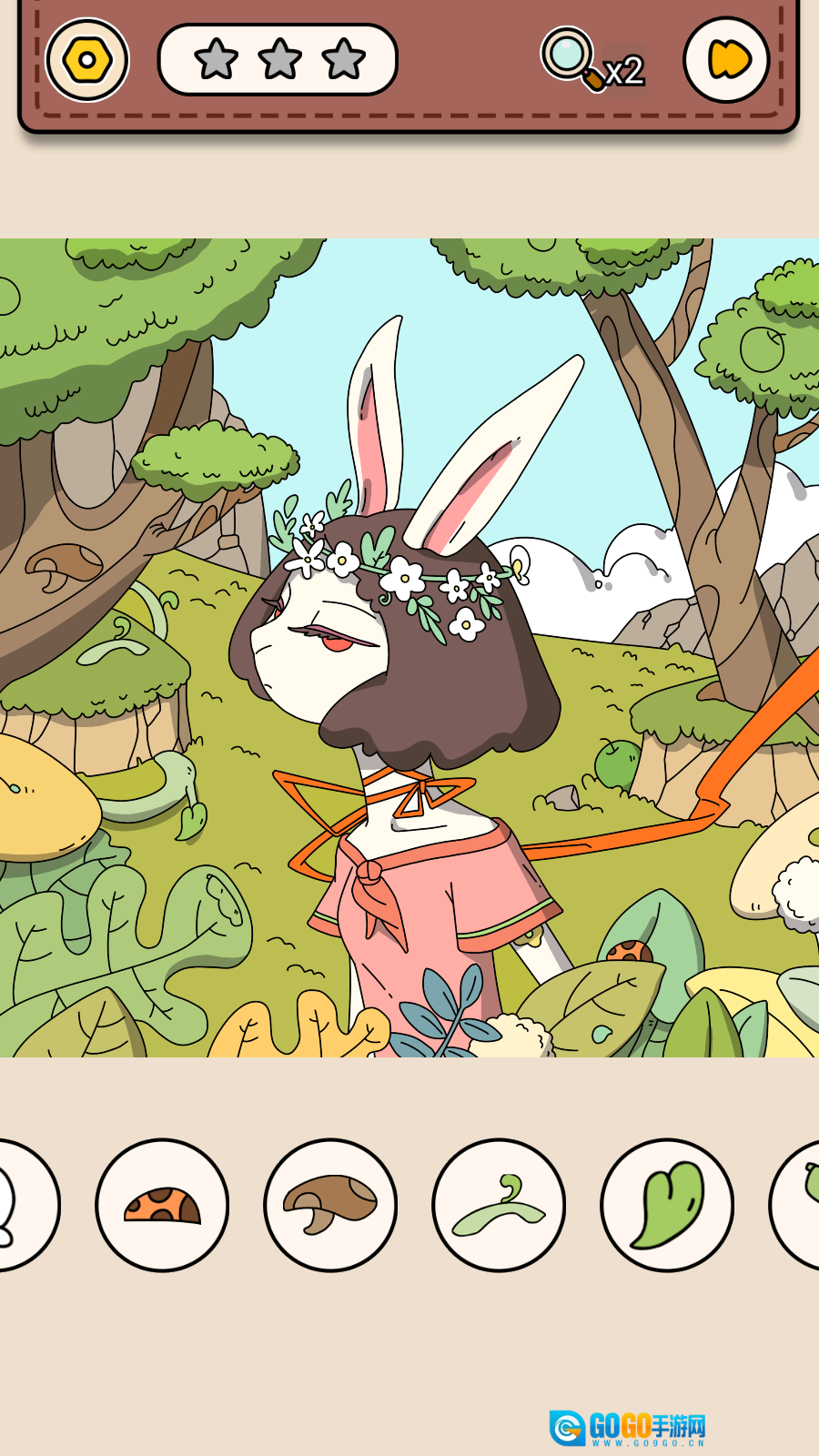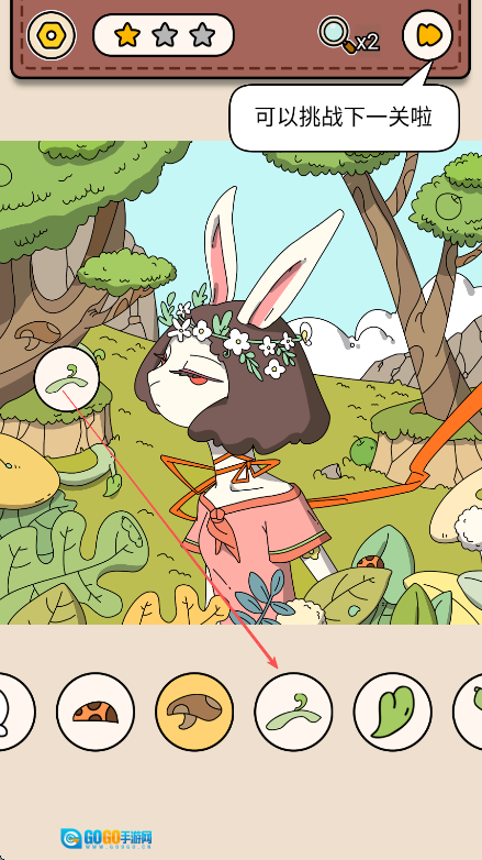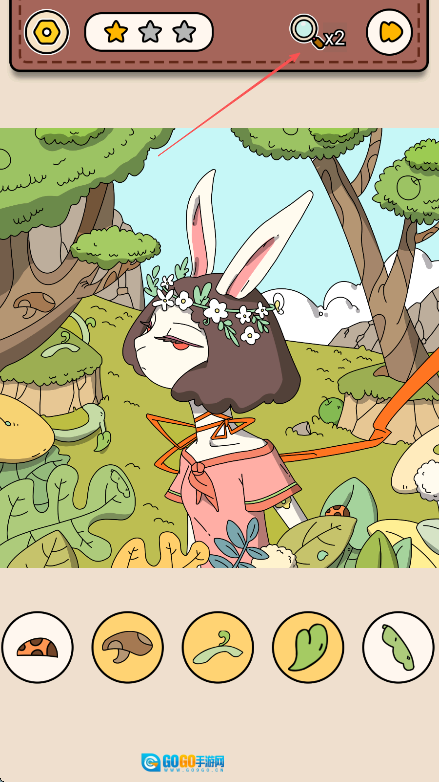 请在画面里认真查找对应的物品,找到之后点击该物品,例如点击画面中对应的植物枝叶。
