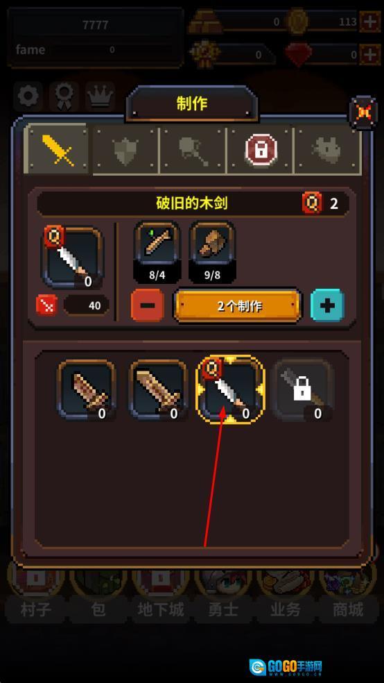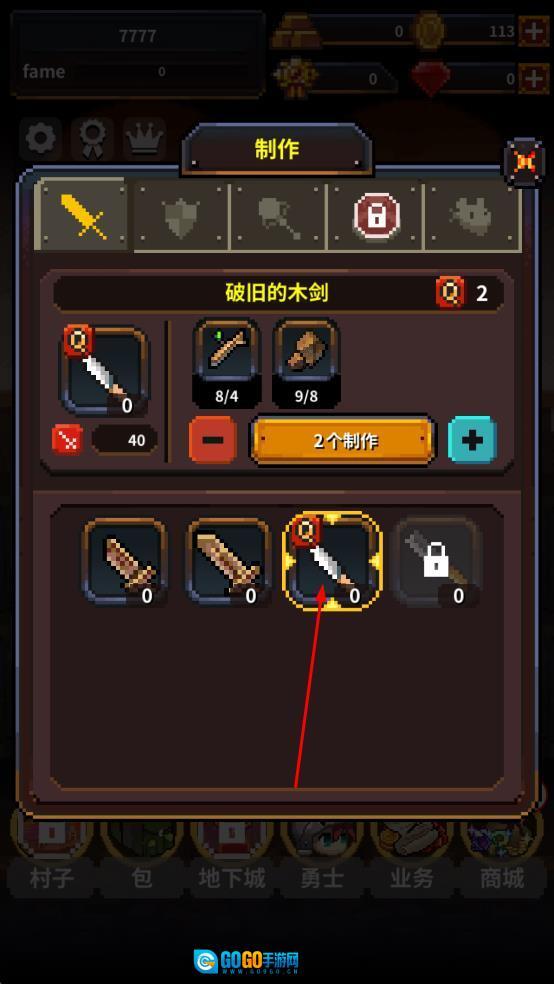进入制作界面后,收集木材、石块这类材料,打造出破旧木剑之类的装备,以此增强角色的战斗能力,为接下来的冒险做好准备。
