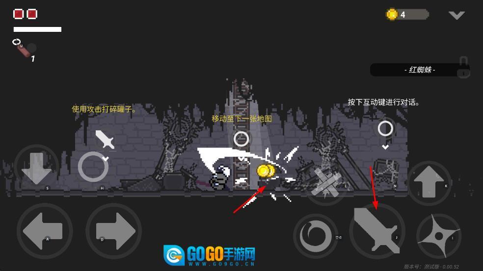 点击攻击键可以打碎罐子来获取道具,碰到敌人的时候,既能够发动攻击,也可以按住格挡键来抵挡敌人的进攻,还能够切换暗器进行作战。