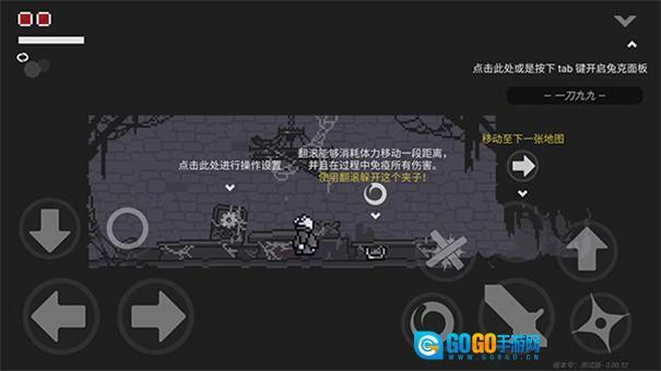 你可以通过方向键操控角色移动,点击翻滚按钮能让角色快速移动一小段距离,在此期间角色不会受到任何伤害,同时还可以切换到下一张地图继续探索。