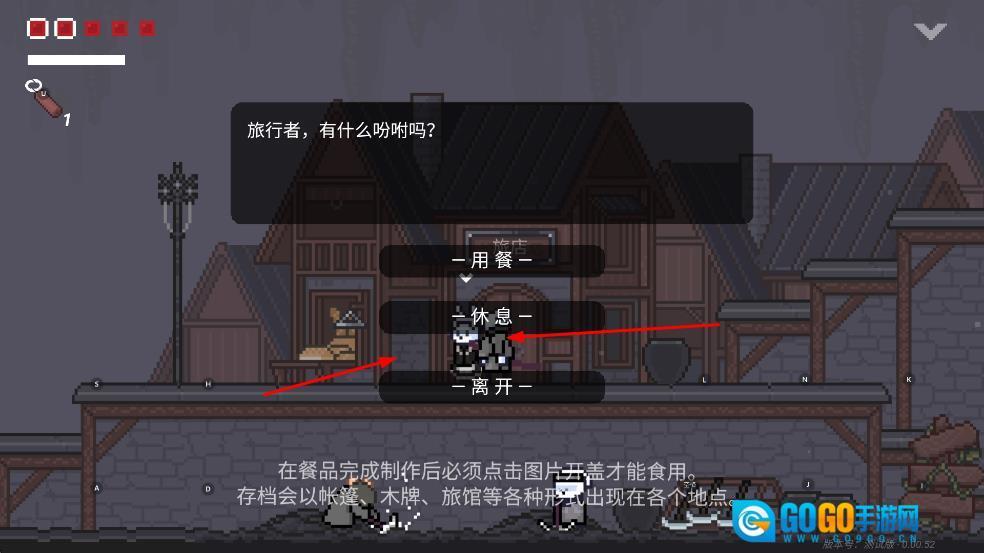 和NPC进行对话,在旅馆这类场景里能够选择用餐、休息或者离开;餐品做好之后得点击图片开盖才可以吃,存档会以各种各样的形式出现在不一样的地方。