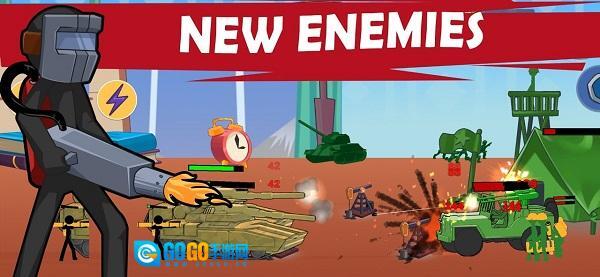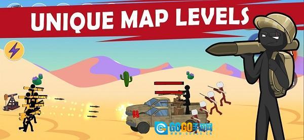 《火柴人世界大战》是由Stickman games free打造的战争模拟策略游戏,其玩法和《火柴人战争遗产》较为相似,但游戏背景更具现代气息。与前者的冷兵器作战以及巨人、魔法师等奇幻元素不同,这款游戏里的各系兵种都配备了现代枪械、炮弹等武器装备。玩家需要先招募工程师去采集石头,再用石头换取的经费来扩充自己的军队,以塔防玩法为基础构建出现代化的火柴人战争场景,以此展现作为指挥官的军事才能。