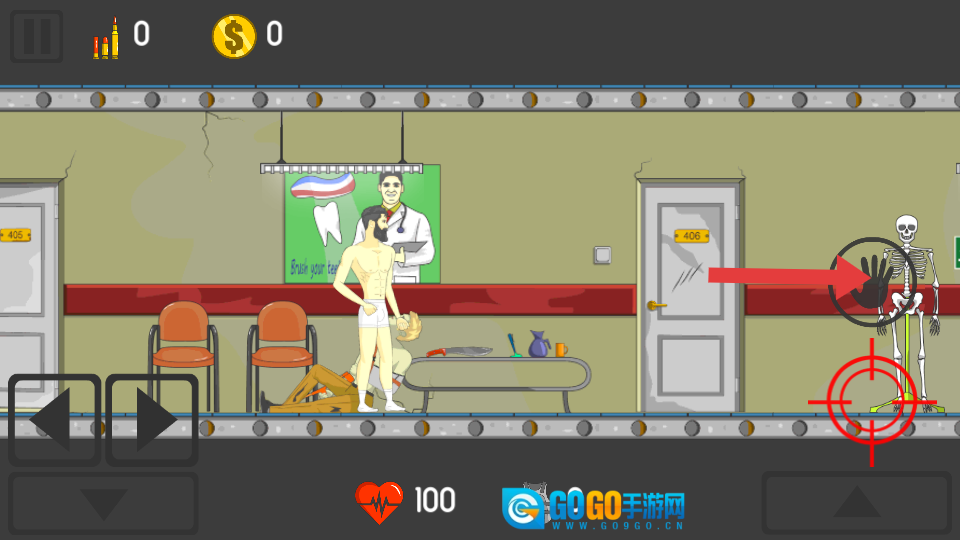 你可以通过左下角的方向键来控制角色移动,过程中要留意那些带有门牌号的房间,还有走廊里的标识、骷髅模型之类的元素,以此来熟悉区域的范围。