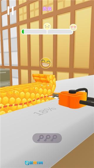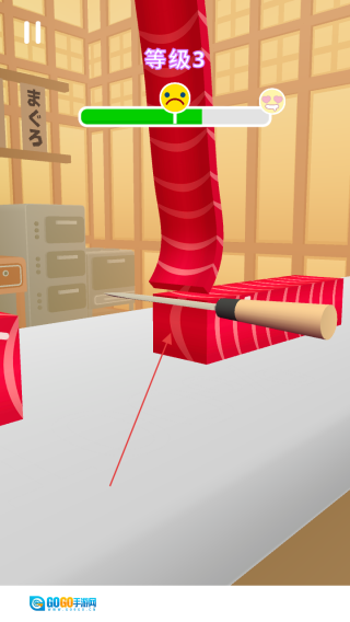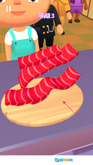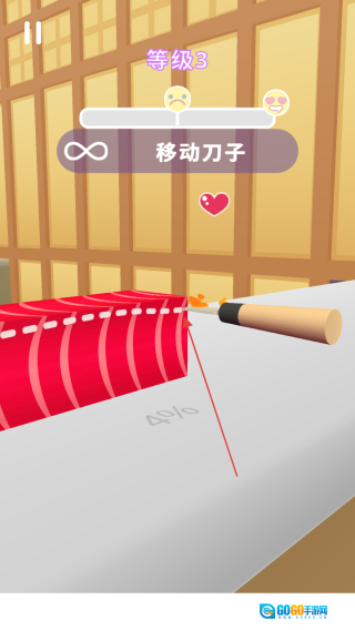 进入游戏后,看到等级3的提示,就按照移动刀子的指示来操控刀具,让它靠近食材。