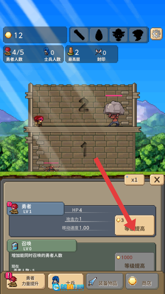 首先留意界面上呈现的勇者数量与士兵数量的具体数值,在初始阶段,能够借助完成像击败低阶怪物这类基础闯关任务来提高角色等级。