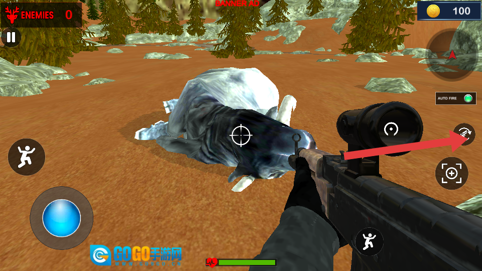 基础狩猎玩法步骤:游戏安装完成进入主界面后,点击“狩猎”选项就能开启;可依据喇叭的声音来辨别猎物所在方向;右侧操作区域能通过左右滑动来调整视角,左侧则是射击按键。
