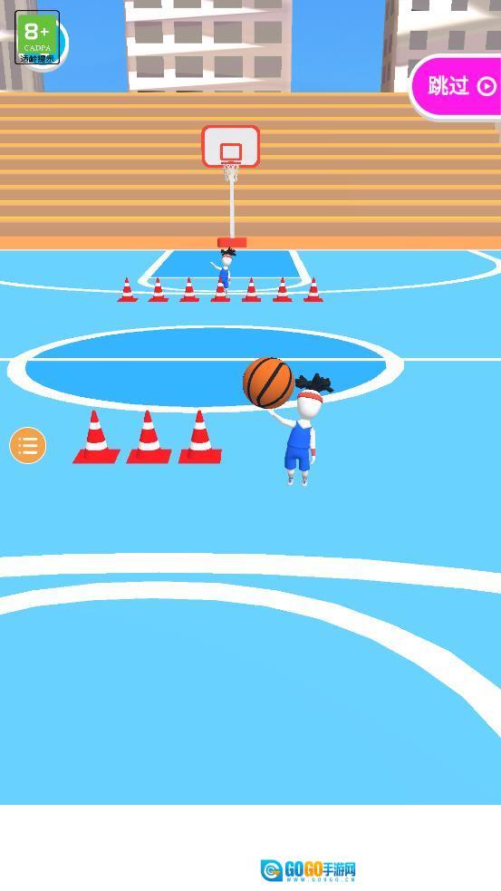 操控角色向左右两侧移动并运球,躲开场地中路锥构成的障碍,朝着篮筐的方向推进,为接下来的投篮动作做好准备。