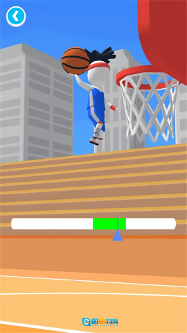 投篮时留意下方的力度条,在恰当的时机出手投篮,争取把篮球投进篮筐来得分。
