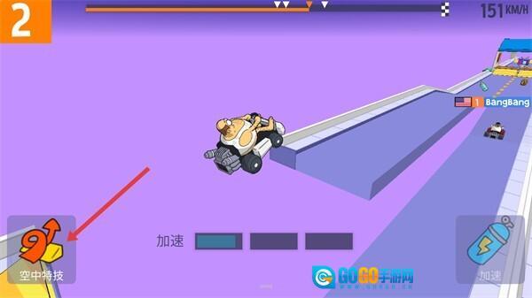 3、腾空状态下点击【空中特技】按钮触发特技,既能积累特技分数,又能维持车速,助力推进赛程。