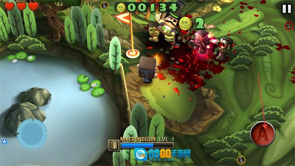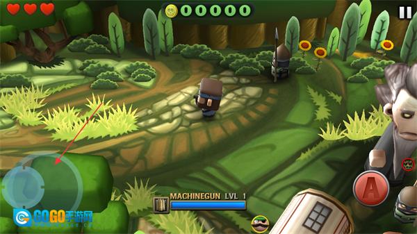 你可以借助左下角的移动轮盘操控角色,避开突然出现的僵尸,同时留意并把握消灭僵尸的机会。