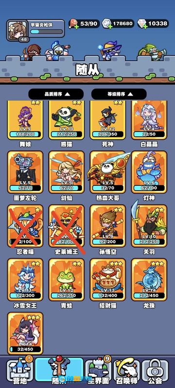 熊猫(可以合成孙悟空,热血大哥,自己很垃圾,不能输出也不能辅助,而且孙悟空只有前期能用,所以后期熊猫都是直接分解的)
