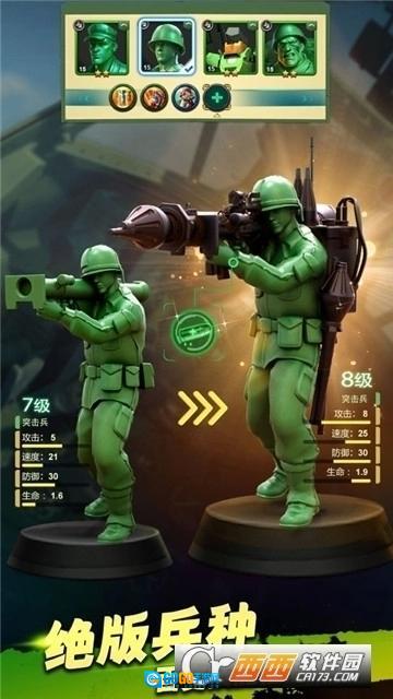 3、游戏中的士兵形象取材于童年时玩过的绿色玩具大兵,游戏蓝本则围绕绿色大兵的故事展开,玩家在游戏里将扮演绿兵们的指挥官,处处都能感受到浓浓的童年气息。