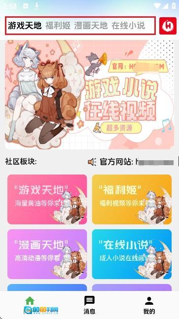 3、如图所示。这里有游戏天地,漫画天地,福利姬,在线小说四个专区。