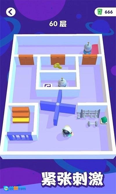 这是一款逃脱冒险类游戏。《胖先生神逃脱》拥有引人注目的画面和便捷的操作导航,玩家将化身特工,在无尽楼层中探寻隐藏的秘密!想要完成任务,就得巧妙避开各种复杂地形与机关,成功进入下一层!