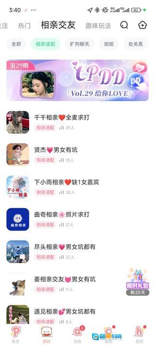 5、除此之外,点击派对板块,这里可以进行聊天交友,你有可能在这里找到那个TA