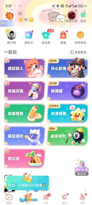 3、在"会玩",一起玩游戏认识到的朋友,还可以k歌、畅聊、做更有趣的事~来会玩,总有一群有趣又温暖的人在等你一起玩。