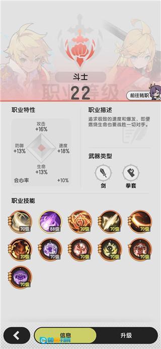战士进阶为斗士(高速度+六边形)和骑士(高防+嘲讽+反伤)