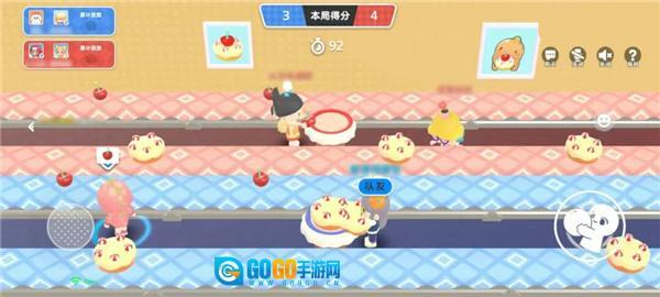 2、游戏中四名玩家分成两队,需要分别搬运樱桃和蛋糕,在中间的桌子上组装成樱桃蛋糕即可+1分