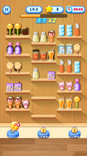 2、关卡中的货架布局形式丰富多样,物品的数量与种类会随着关卡进度逐步增多,从初期简单的平面收纳任务,过渡到后续复杂的立体空间布局挑战,不断为玩家带来新鲜感与新的考验。