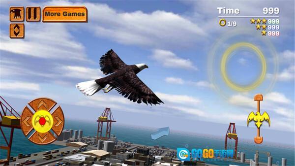 3、等左下角的LOADING加载结束后,用左下角的圆盘来控制老鹰的飞行方向和高度,先把基础操作练熟。