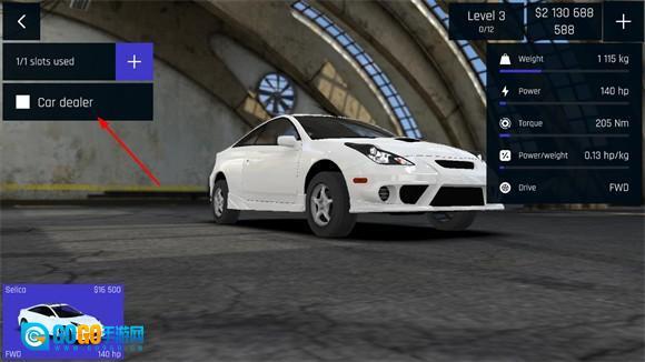 4、要是没办法购买车辆,可以点击左侧的+号来增加车库的位置,解锁新的车位之后就能接着购买车辆了。