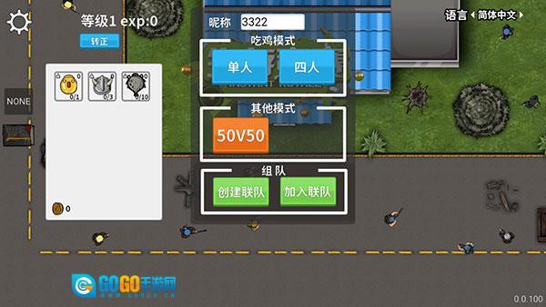 2、可以编辑自己的游戏昵称,选择单人或双人的吃鸡模式,也能选择50V50等其他模式,还能和朋友组队进行游戏。