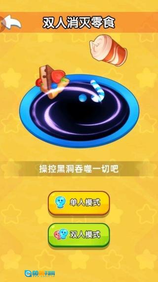 双人消灭零食大战版是一款以趣味双人玩法为核心的合集类游戏,主打双人吞噬对抗模式,玩家将化身为黑洞在城市中比拼吞噬零食的进化速度,同时还收录了多款小游戏,能够充分满足休闲娱乐的需求,让玩家在欢快的氛围里轻松释放压力。