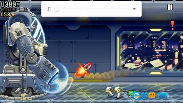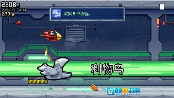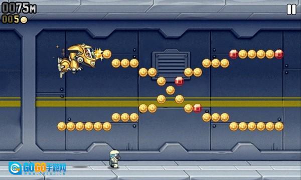 2、轻触屏幕任意位置即可启动游戏,点击屏幕时角色会向上飞行,松开屏幕则会下落,需根据金币和道具的位置灵活调整操作。该游戏玩法类似像素鸟,不过新增了射击功能。游戏过程中会遇到带电流的障碍,务必注意躲避,一旦触碰就会导致游戏失败。