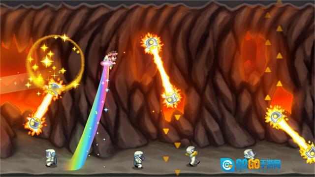 《火箭飞人》是一款横版跑酷游戏,玩家操控的小人背着喷射背包穿梭于场景之间,需要摧毁各类武器与机械障碍物,最终逃出实验室。游戏采用关卡制设计,玩家可通过搭配不同装备来提升移动速度与武器破坏力,以此击败邪恶科学家的手下。此外,游戏还支持高自由度的角色装扮系统,提供了丰富的高科技配件和载具供玩家使用。