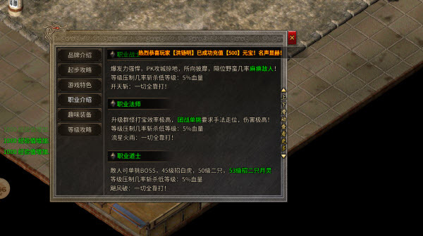3、新人背包配备宝宝卷,助力开荒;完成任务可获取金币与经验卷!三职业保持平衡,支持双开操作——战士适合PK竞技,道士擅长打装备,法师则可刷材料;拍卖行可收购散人打到的聚灵珠、金条、装备及各类材料!