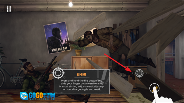 3、转动右侧旋钮,让枪口对准红色区域,即可击败敌人。