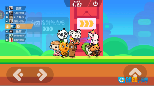 3、比赛开始后,可通过左右滑动操作来控制角色移动,向上滑动能让角色跳跃,向下滑动则可触发滑铲动作,过程中要留意避开地图里的滚石、陷阱之类的障碍物。