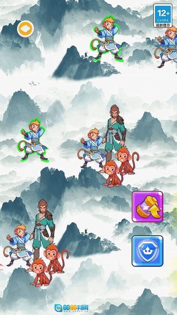 悟空超进化最新版是一款以经典西游故事为背景的合成闯关游戏。在游戏里,玩家可以化身为孙悟空、唐僧、猪八戒等经典西游角色,开启一段充满挑战与成长的冒险旅程。玩家需要持续进行合成与训练,以此提升角色的技能和能力,最终进化为威力更强大的悟空形态。此外,游戏还设有丰富的竞技玩法,玩家能与众多小猴子展开激烈的竞技对决,只有战胜所有小猴子,才能荣登猴界大王的宝座。