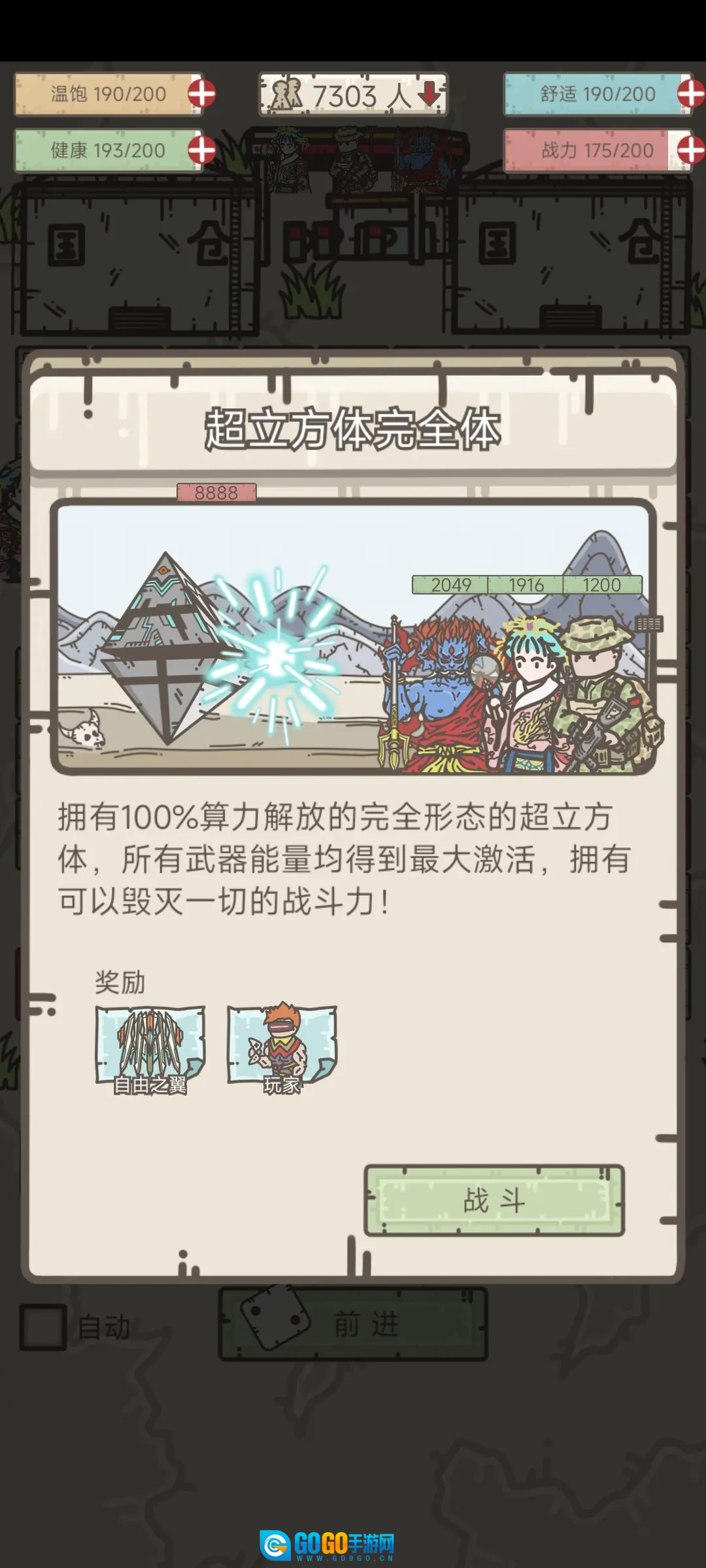 探索与战斗玩法:玩家能够指挥角色在地图上进行探索,以此搜集各类资源和装备。当遭遇怪物时,需要消耗角色的健康值和战力值才能开启战斗。