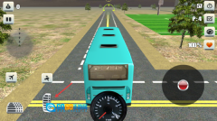 驾驶蓝色巴士在道路上行驶时,需借助左侧的踏板与按钮进行操控。