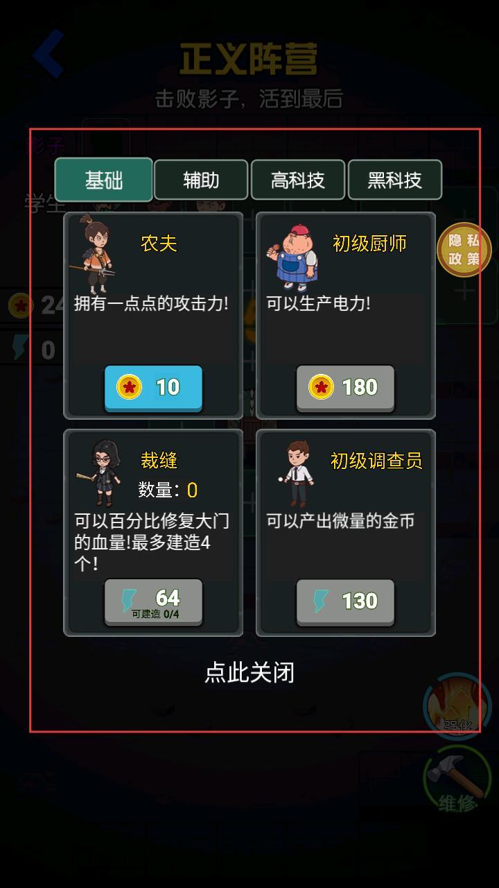 4、英雄角色体系:玩家可收集具备独特技能的幸存者角色,每个英雄都能带来不同的属性增益以及专属技能效果,通过搭配这些英雄来构建起能够相互补充的防御阵容。