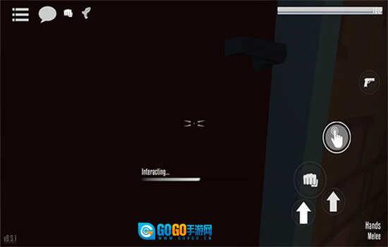 5、靠近建筑物,会出现图示按钮,长按可以开门。