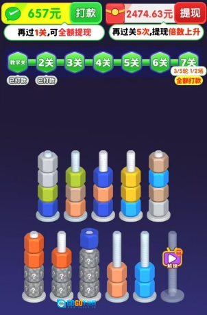 3、游戏里存在一些带问号的螺丝,得把上方的螺丝都移开才能看清它们的颜色。