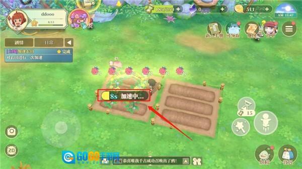 1、左上角设有“主线”任务,其中“加速农田”指的是对农田执行一次加速操作。
