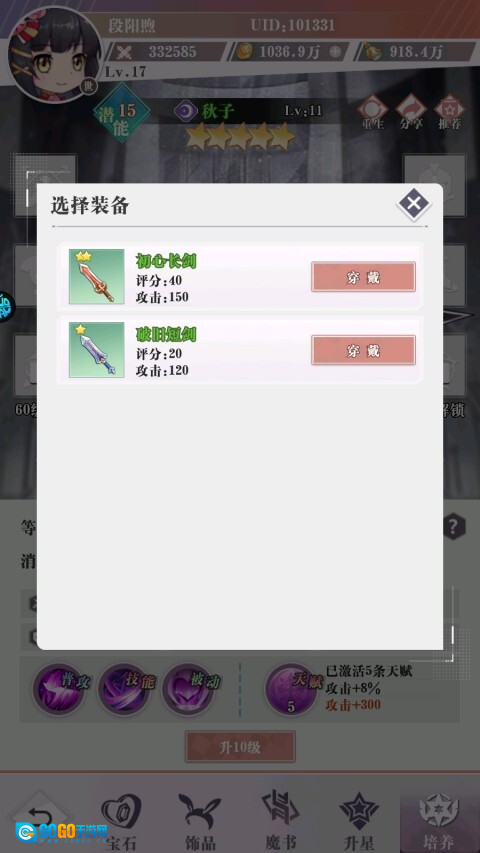 2、为英雄挑选装备,所穿戴装备的评分越高,其战力提升幅度就越大。