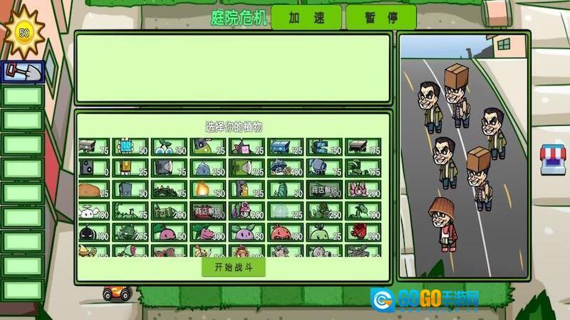 2、战斗打响前,需在庭院的方格区域内对所选植物进行合理排布,借助植物各自的攻击范围与特性,搭建起能够发挥作用的防御阵线。