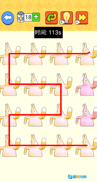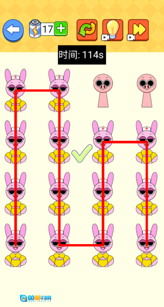 2、第二关只需连接浅色兔子,深色兔子无需处理,画线时注意避开它们。
