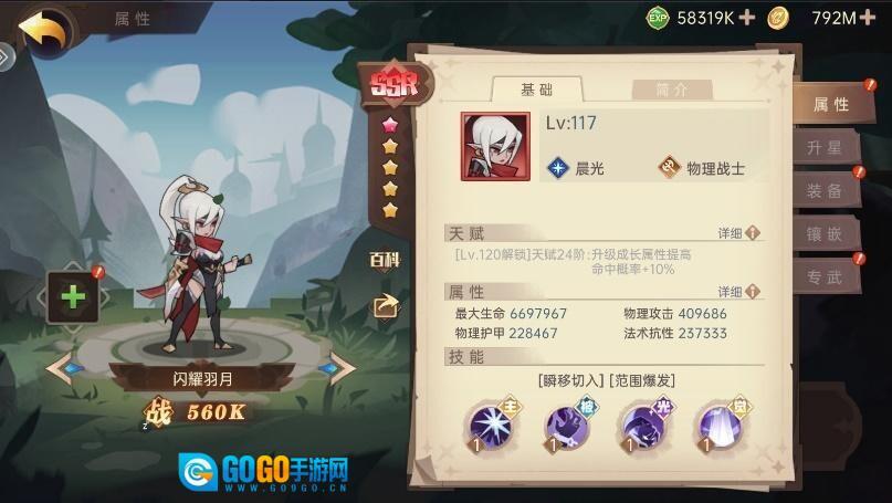 圣骑士在游戏中期可以换成拥有3阶专武的影舞,以此来增加暴击和爆伤的增益效果。