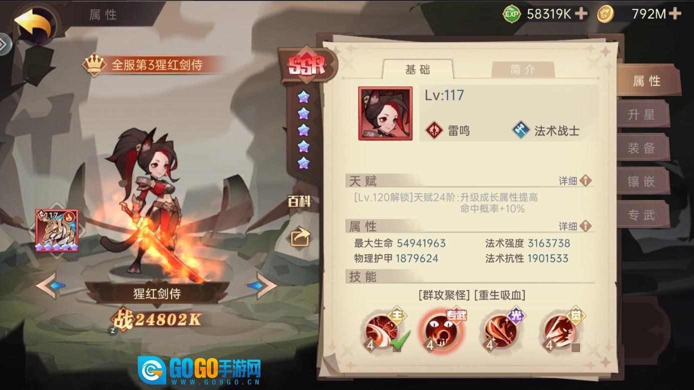 ps:猩红只要练度养成到一定程度,就能融入绝大多数阵容搭配,尤其适配法师队伍,其觉醒效果还附带少量法术易伤。