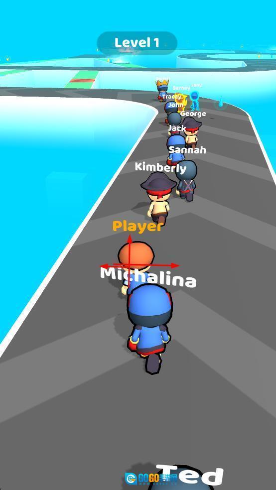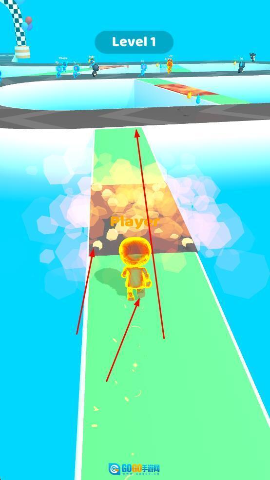 1、当前处于Level1关卡,需操控角色与其他选手在赛道上展开竞速,通过调整位置来开启竞速进程。