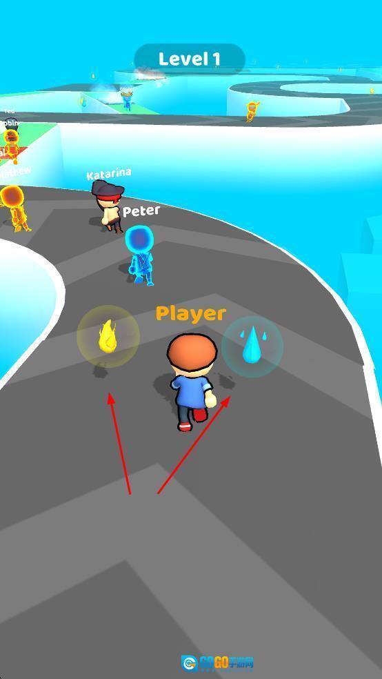 2、收集火焰与水滴元素可获取增益效果,触发变身后能显著提升竞速能力,助力保持竞争优势。