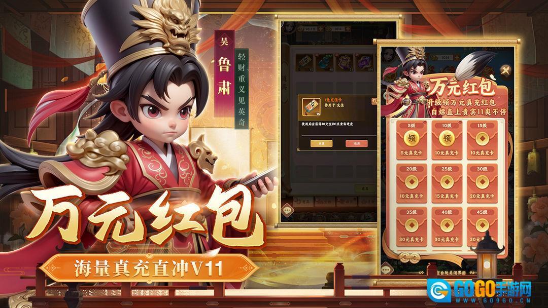 2. 精美画面与角色立绘:游戏运用Q版古风美术风格,场景设计丰富多元,武将角色的立绘细腻精致,技能特效绚烂夺目,为玩家打造沉浸式的视觉盛宴。