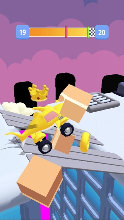 2、选择赛道进入后,赛车会自动前进,也可手动操控,过程中需躲避障碍、飞越坡地,系统将根据完成时间进行评级,评级达标后可解锁新的零件与赛道。