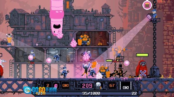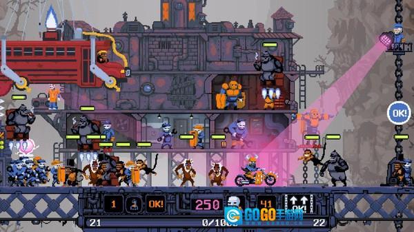 2、弗拉基米尔带领一群勇敢、真诚但有点倒霉的机械师们与猴子们展开战斗,同时一关一关往上爬,打败那些误入炼狱的Boss并交给地狱使者,这样它们就会被送到属于它们的地狱。
