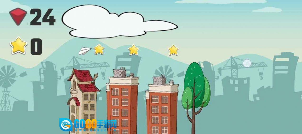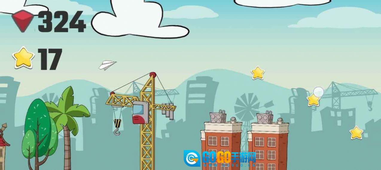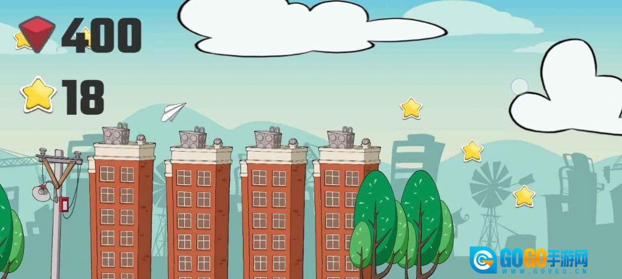 3、游戏场景里的城市街景都会变成阻碍飞机飞行的障碍,通过手指上下滑动即可助力纸飞机飞行。